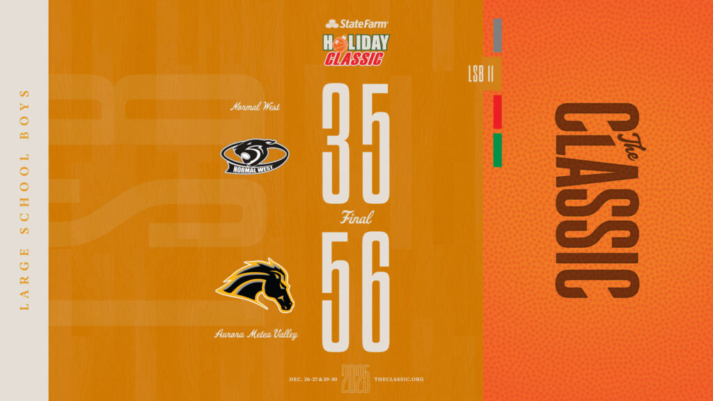 2025 Results LSBLSB: Aurora Metea Valley 56 / Normal West 35 December 27, 2025 by The Classic Team1234Aurora Metea Valley1372412Normal West812411 View the game results and box score at TurboStats: https://statefarmholidayclassic.sportstrack.app/basketball/seasons/265/box-scores/9974 Related posts LSB Championship: Normal Community 59 / Rock Island 44 LSG Championship: Washington 52 / Chicago DePaul College Prep 36 SSB Championship: Quincy Notre Dame 72 / Joliet Catholic Academy 59 SSG Championship: Paris 53 / Winnebago 40 Previous Post:SSG: Sherrard 57 / Springfield Sacred Heart-Griffin 42 Next Post:SSB: Lanark Eastland 50 / Aurora Christian 46 (3 OT)
