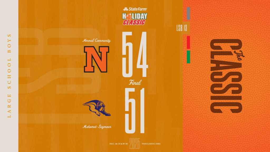 2025 Results LSBLSB: Normal Community 54 / Mahomet-Seymour 51 December 27, 2025 by The Classic Team1234TNormal Community36111554Mahomet-Seymour01111251 View the game results and box score at TurboStats: https://statefarmholidayclassic.sportstrack.app/basketball/seasons/265/box-scores/9976 Related posts LSB Championship: Normal Community 59 / Rock Island 44 LSG Championship: Washington 52 / Chicago DePaul College Prep 36 SSB Championship: Quincy Notre Dame 72 / Joliet Catholic Academy 59 SSG Championship: Paris 53 / Winnebago 40 Previous Post:SSG: Winnebago 55 / Bloomington Central Catholic 51 Next Post:SSB: Joliet Catholic 65 / Kankakee Bishop McNamara 48