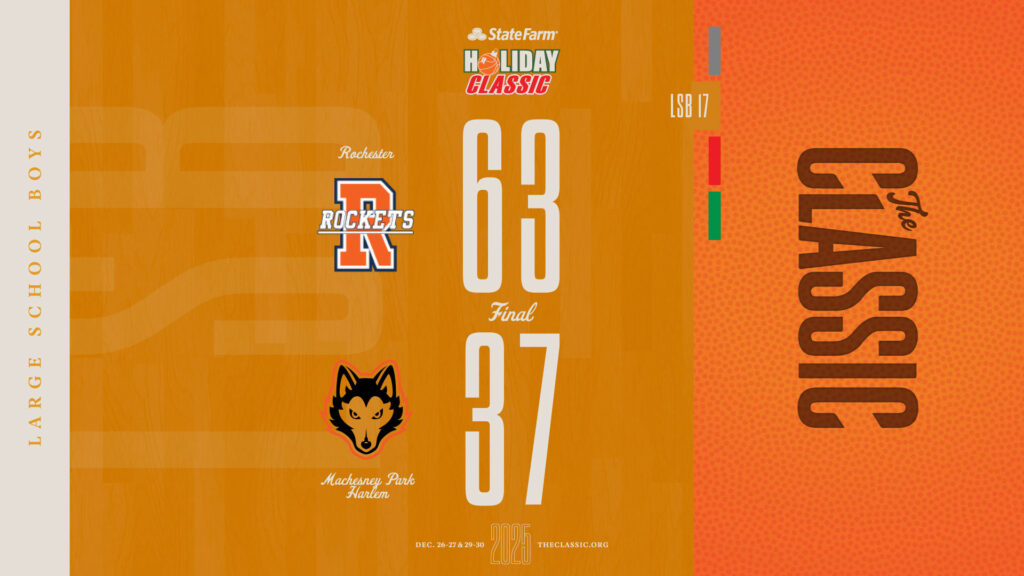 2025 Results LSBLSB: Rochester 63 / Machesney Park Harlem 37 December 29, 2025 by The Classic 1234TMachesney Park Harlem6139937Rochester1123201163 View the game results and box score at TurboStats: https://statefarmholidayclassic.sportstrack.app/basketball/seasons/265/box-scores/9980 Related posts LSB Championship: Normal Community 59 / Rock Island 44 LSG Championship: Washington 52 / Chicago DePaul College Prep 36 SSB Championship: Quincy Notre Dame 72 / Joliet Catholic Academy 59 SSG Championship: Paris 53 / Winnebago 40 Previous Post:SSG: Camp Pt. Central 60 / St. Joseph-Ogden 56 Next Post:SSG: Sherrard 44 / Stanford Olympia 41