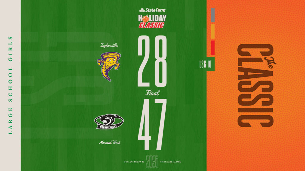 2025 Results LSGLSG: Normal West 47 / Taylorville 28 December 27, 2025 by The Classic Team1234TTaylorville9105428Normal West75171847 View the game results and box score at TurboStats: https://statefarmholidayclassic.sportstrack.app/basketball/seasons/267/box-scores/9945 Related posts LSB Championship: Normal Community 59 / Rock Island 44 LSG Championship: Washington 52 / Chicago DePaul College Prep 36 SSB Championship: Quincy Notre Dame 72 / Joliet Catholic Academy 59 SSG Championship: Paris 53 / Winnebago 40 Previous Post:SSB: Downs Tri-Valley 58 / Stanford Olympia 28 Next Post:SSG: St. Joseph-Ogden 49 / Rochester 35