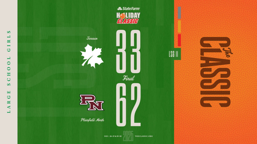 2025 Results LSGLSG: Plainfield North 62 / Geneseo 33 December 27, 2025 by The Classic Team1234TGeneseo15144233Plainfield North1020141862 View the game results and box score at TurboStats: https://statefarmholidayclassic.sportstrack.app/basketball/seasons/267/box-scores/9946 Related posts LSB Championship: Normal Community 59 / Rock Island 44 LSG Championship: Washington 52 / Chicago DePaul College Prep 36 SSB Championship: Quincy Notre Dame 72 / Joliet Catholic Academy 59 SSG Championship: Paris 53 / Winnebago 40 Previous Post:SSB: Pecatonica 63 / Chicago North Lawndale 55 Next Post:SSG: Sherrard 57 / Springfield Sacred Heart-Griffin 42