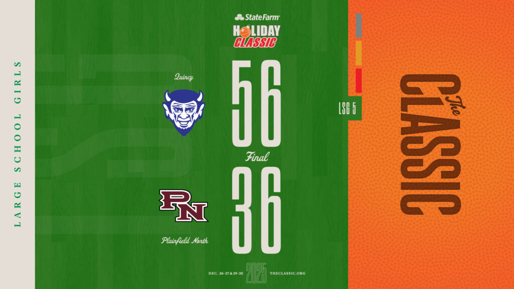 2025 Results LSGLSG: Quincy 56 / Plainfield North 36 December 26, 2025 by The Classic Team1234TQuincy183101056Plainfield North81701136 View the game results and box score at TurboStats: https://statefarmholidayclassic.sportstrack.app/basketball/seasons/267/box-scores/9940 Related posts LSB Championship: Normal Community 59 / Rock Island 44 LSG Championship: Washington 52 / Chicago DePaul College Prep 36 SSB Championship: Quincy Notre Dame 72 / Joliet Catholic Academy 59 SSG Championship: Paris 53 / Winnebago 40 Previous Post:SSB: St. Joseph-Ogden 49 / Chicago North Lawndale 46 Next Post:SSG: Winnebago 62 / Rock Falls 23
