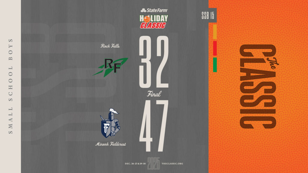 2025 Results SSBSSB: Minonk Fieldcrest 47 / Rock Falls 32 December 27, 2025 by The Classic Team1234TRock Falls6512932Minonk Fieldcrest141415447 View the game results and box score at TurboStats: https://statefarmholidayclassic.sportstrack.app/basketball/seasons/264/box-scores/9904 Related posts LSB Championship: Normal Community 59 / Rock Island 44 LSG Championship: Washington 52 / Chicago DePaul College Prep 36 SSB Championship: Quincy Notre Dame 72 / Joliet Catholic Academy 59 SSG Championship: Paris 53 / Winnebago 40 Previous Post:LSG: Chicago DePaul College Prep 50 / Quincy 49 Next Post:LSB: Rock Island 64 / Bradley-Bourbonnais 37