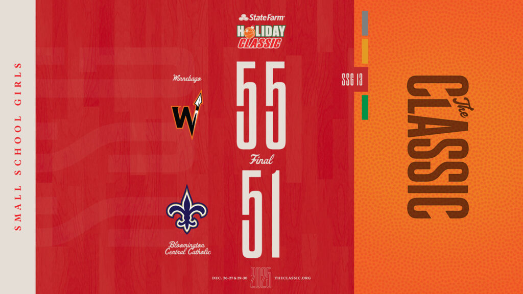 2025 Results SSGSSG: Winnebago 55 / Bloomington Central Catholic 51 December 27, 2025 by The Classic View the game results and box score at TurboStats: https://statefarmholidayclassic.sportstrack.app/basketball/seasons/266/box-scores/9872 Related posts LSB Championship: Normal Community 59 / Rock Island 44 LSG Championship: Washington 52 / Chicago DePaul College Prep 36 SSB Championship: Quincy Notre Dame 72 / Joliet Catholic Academy 59 SSG Championship: Paris 53 / Winnebago 40 Previous Post:LSG: Washington 58 / Kankakee 11 Next Post:LSB: Normal Community 54 / Mahomet-Seymour 51